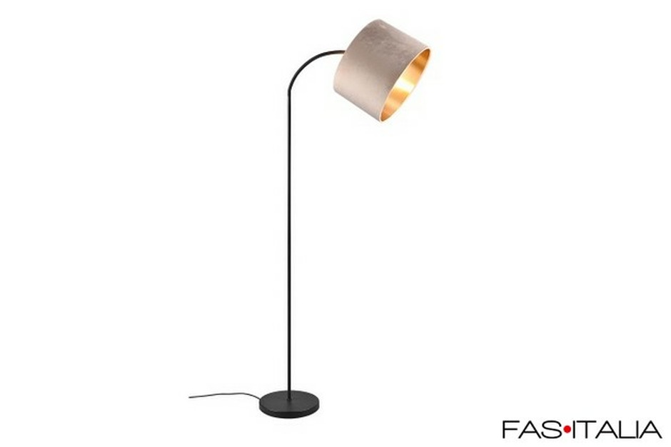 Piantana in metallo finitura nero opaco con paralume in velluto beige, con interno dorato.