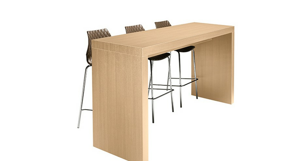 Tavolo alto per penisola con rivestimento in laminato, ideale da utlilizzare come mobile per la sala colazione. Finiture a scelta. Dimensioni: 300x60x110 cm (LxPxH). Peso: 66kg.