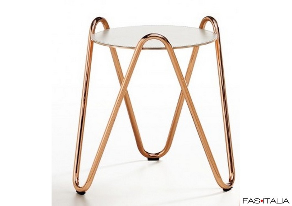 Tavolini - Tavolino tondo basso con struttura in metallo e piano in cuoio